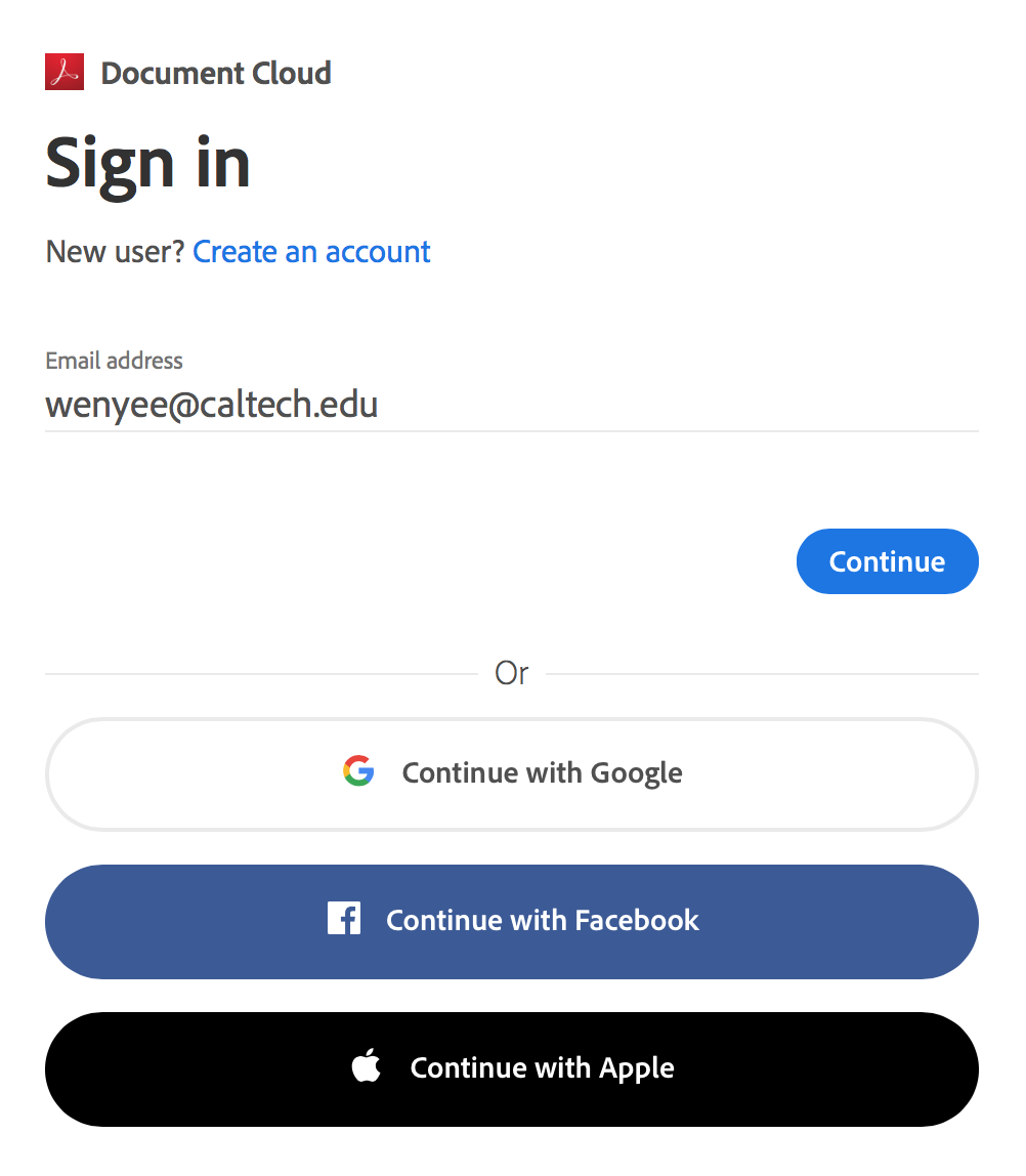 To request access to this license, please email [email protected] and provide your access.caltech username. After you receive confirmation that you have been granted access, follow these instructions to use Adobe Document Cloud: