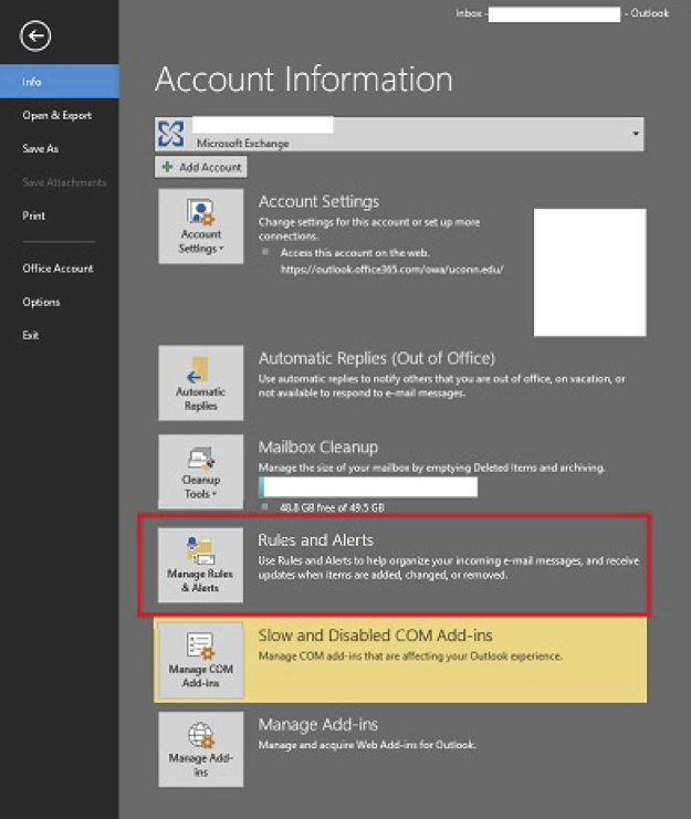 6. In the bottom box, click on specified. Select your Junk Email folder. Click OK