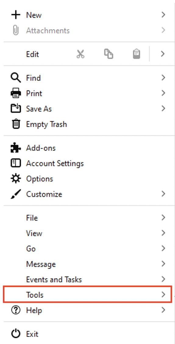 - Click the menu button which is located in the upper right hand side of Thunderbird.