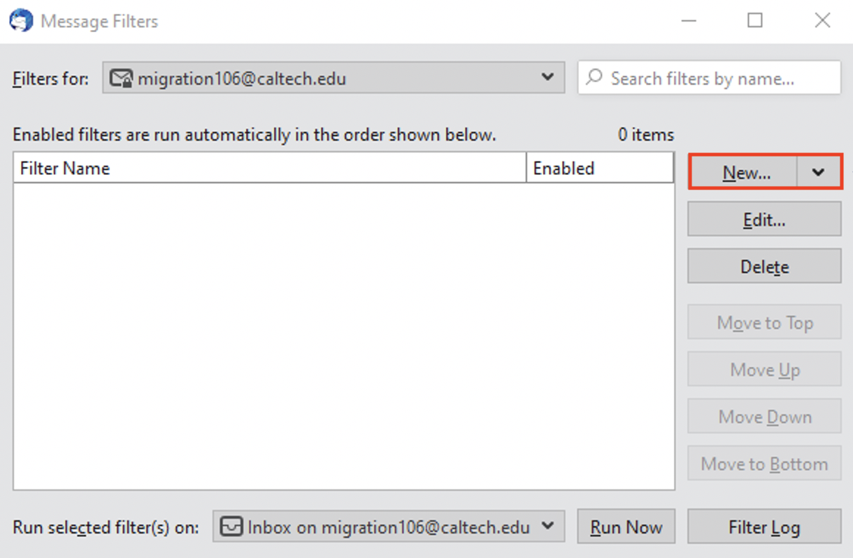 5. Confirm that the new filter is enabled for your mailbox and close this dialog box to return to Thunderbird