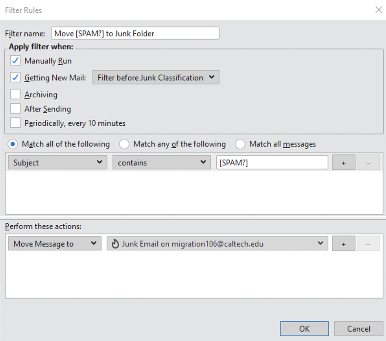 Junk Mail Rule Configuration Instructions for Thunderbird