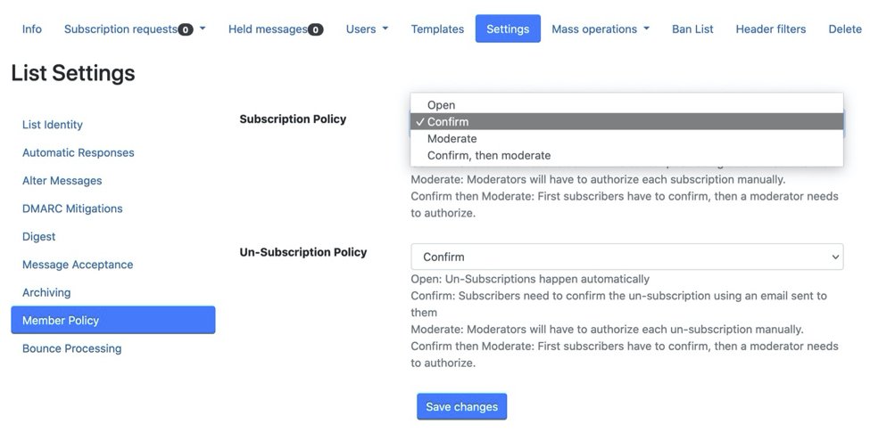 Users can also add additional email addresses or aliases for different lists using a confirmation process via the web interface. For example you may have [email protected] as your primary email for ownership of lists but you may also have [email protected] as a member of a list.