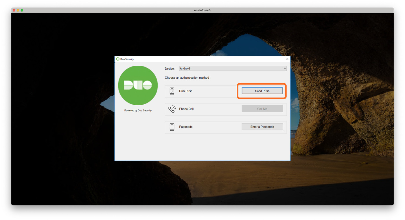 - Duo may initiate a push automatically or may present you with a list of authentication methods. If you see the list of authentication methods, select "Send Push"