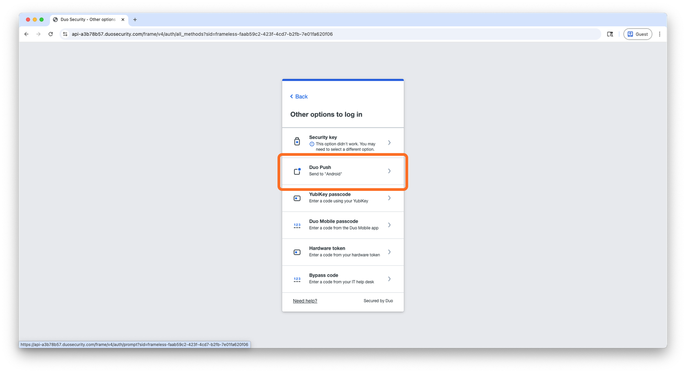 How to authenticate using Duo Mobile Verified Push in a web browser
