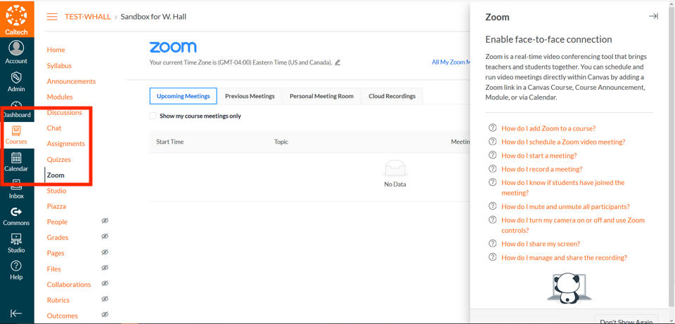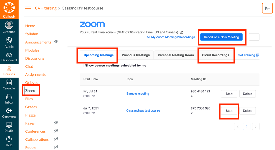 Caltech has provided all Canvas courses with a Zoom integration that facilitates: