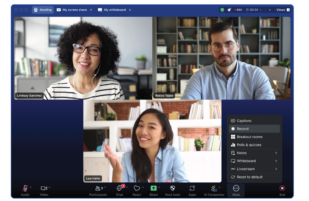 A toolbar, available during meetings, can be customized by dragging and dropping icons to adjust meeting features specific to your needs. The in-meeting security tab is now located under the "Host Tools" icon.