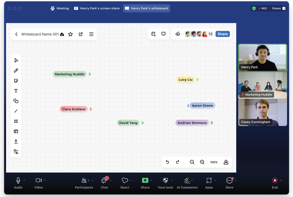 Now, participants can share content simultaneously, and participants can see each other's shared content as individual tabs in the meeting window.