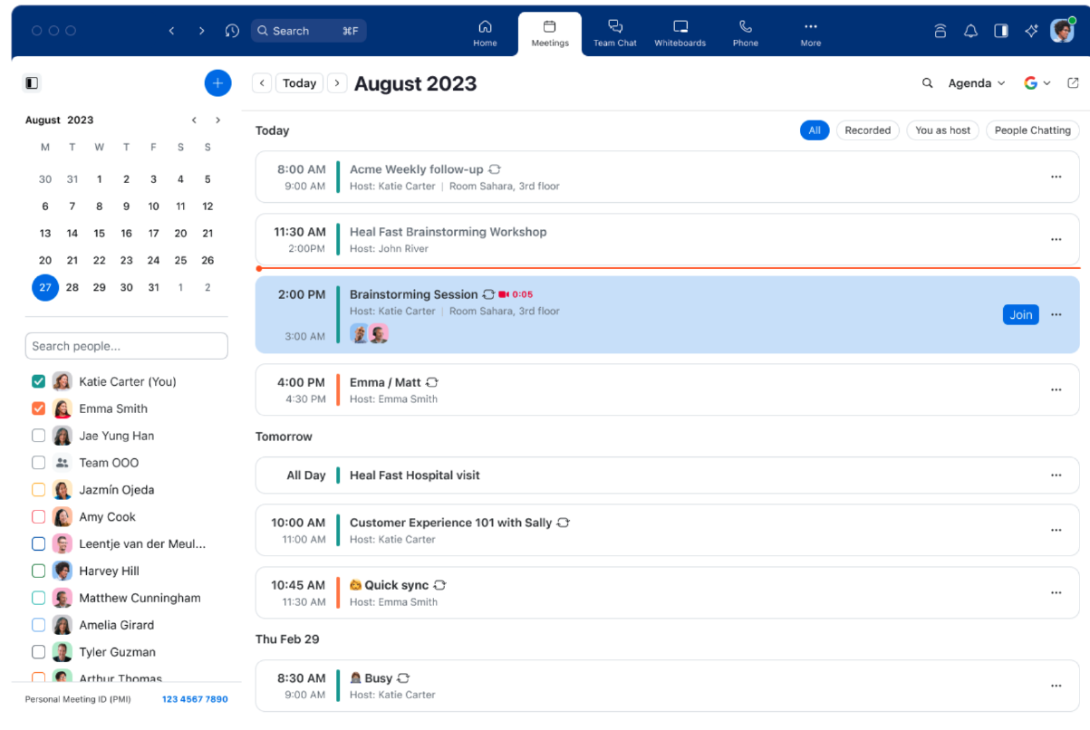 With the 6.0 update, the Meetings and Calendar tab will be combined into one tab, the Meetings tab, to provide more details of the calendar and daily tasks. With this, you will be able to view multiple things in one place: view upcoming meetings, view RSVP responses, and any shared materials ahead of the session. You can also check previous meetings' recordings, chats, and whiteboards here.