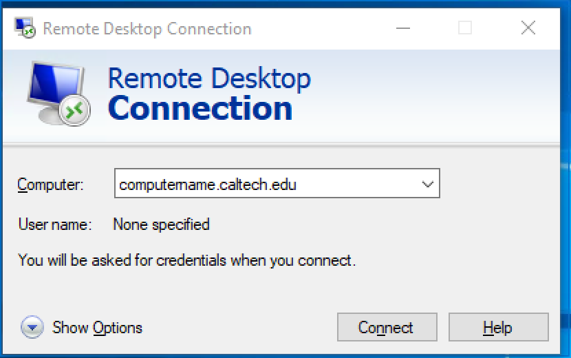 - Enter your work computer name [computername.caltech.edu] or IP Address