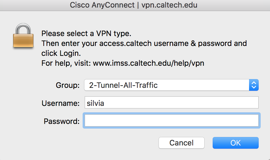 - Enter your Caltech username and password and click Ok